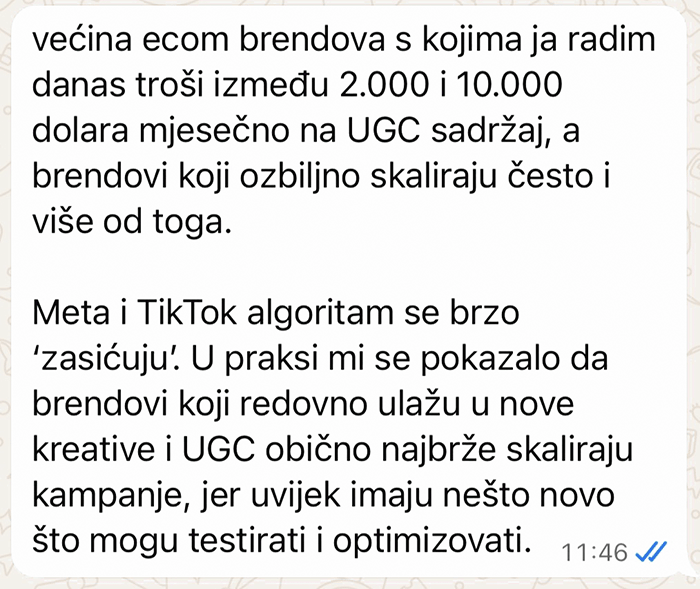 Ne UGC kreatori ne zarađuju zato što imaju veliku publiku. Zarađuju zato što prave sadržaj koji brendovi koriste u oglasima.